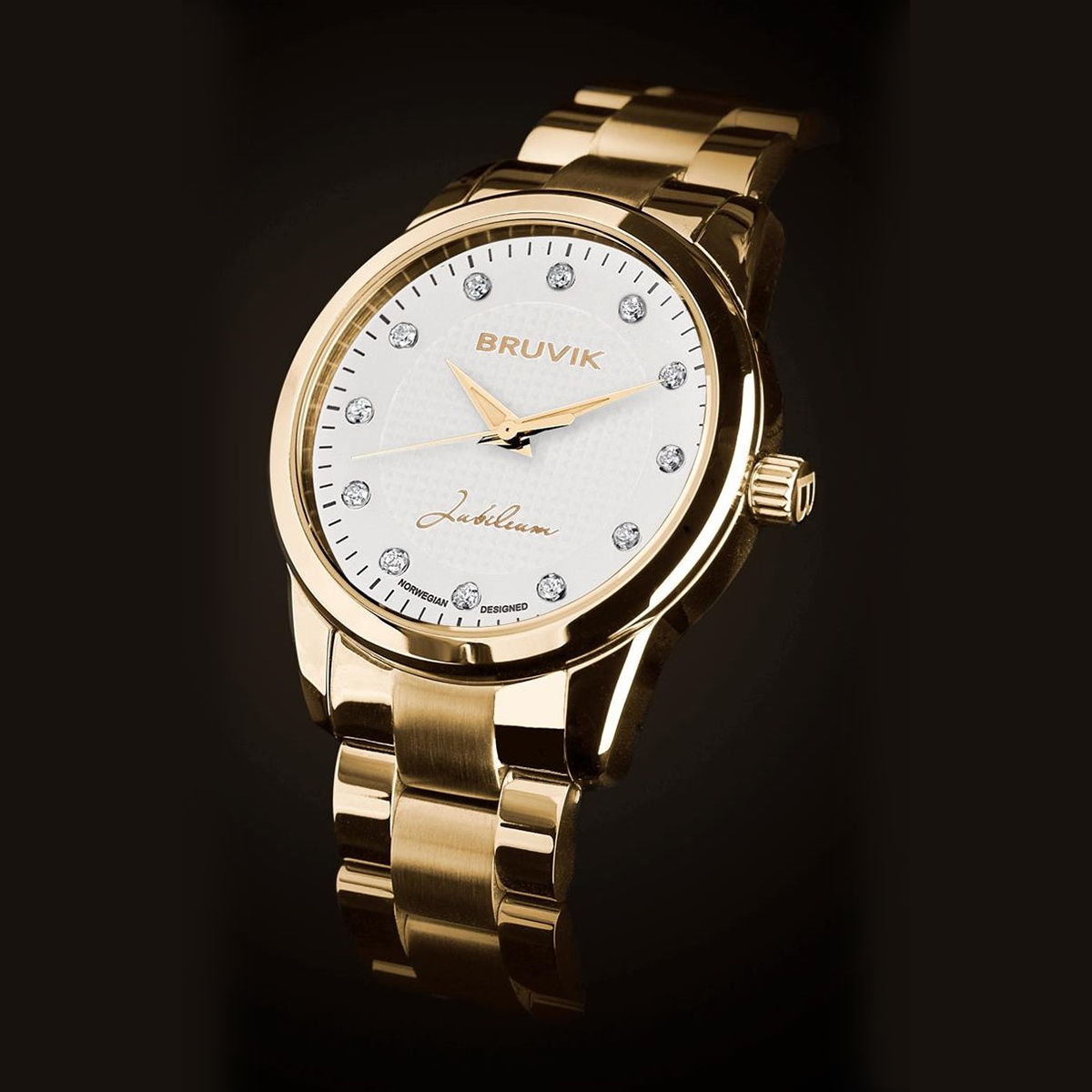 Dame jubileumsur i str. Ø36mm. Urkasse belagt med 10 micron 23 karat gult gull.