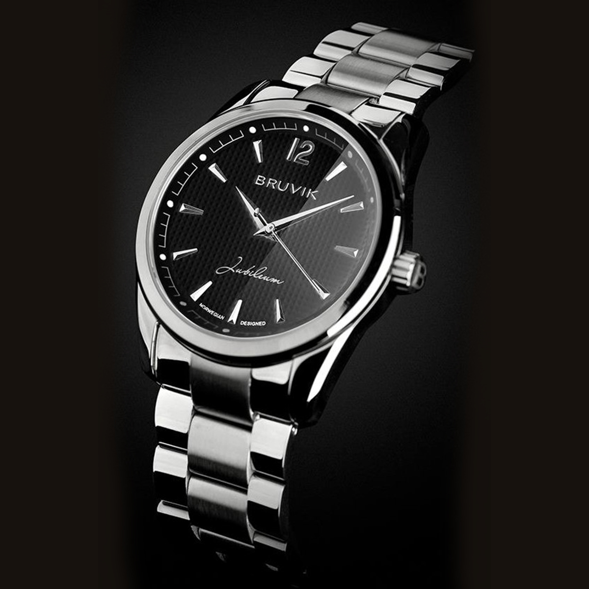 Herre jubileumsur i str. Ø40mm. Uret har 316L stålkasse og lenke i stål.